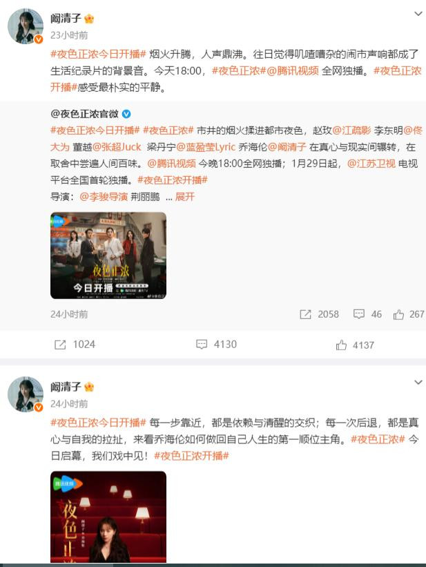 时隔一个月,时间都快到1月底了,阚女士因为新剧需要官宣,才接连发布了几条相关动态。